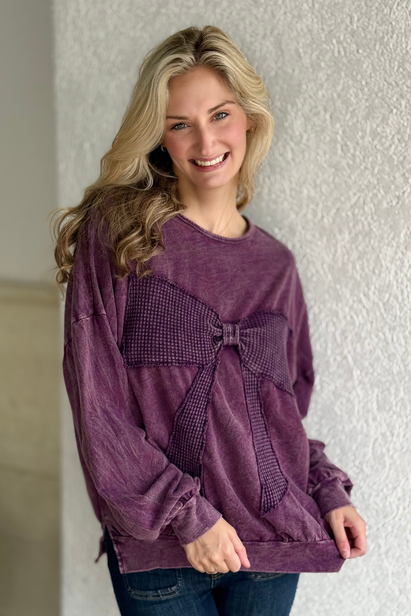 Waffle Bow Terry Sweatshirt in Midnight Green