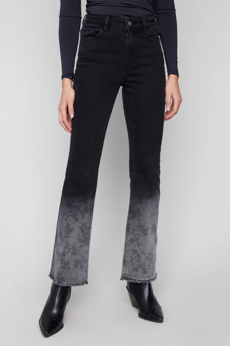 Charlie B Flared Jeans With Floral Washed Hem – Charcoal