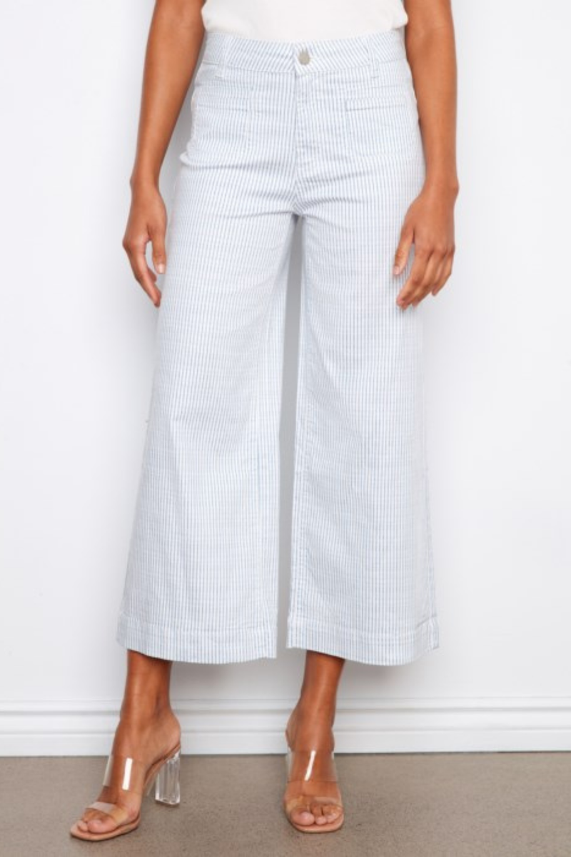 Charlie B Striped Cropped Patch Pocket Flare Twill Pants – Lines