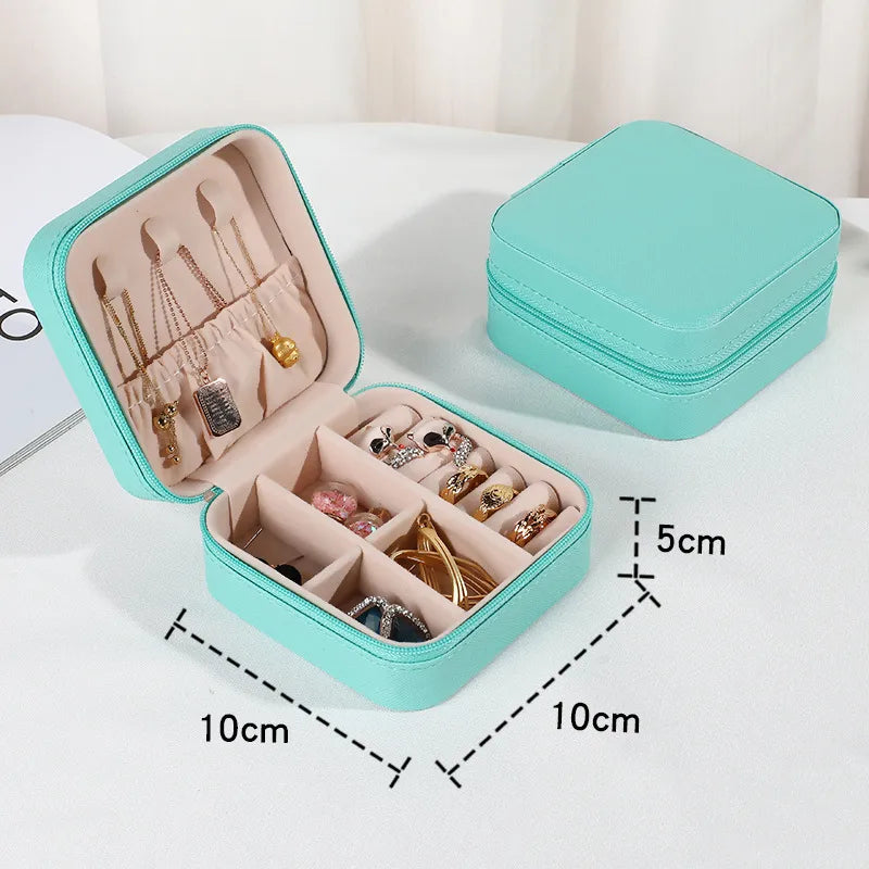 Measuring 10cm x 10cm x 5cm, this structured case features dedicated compartments for rings, earrings, necklaces, and small bracelets. The soft interior lining helps protect your jewelry from scratches, while the secure zip closure keeps everything safely in place.
