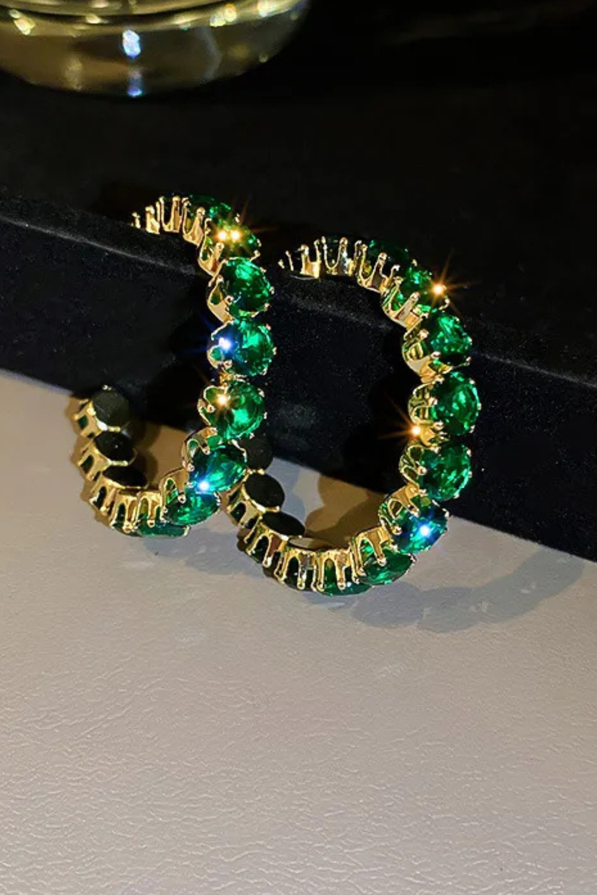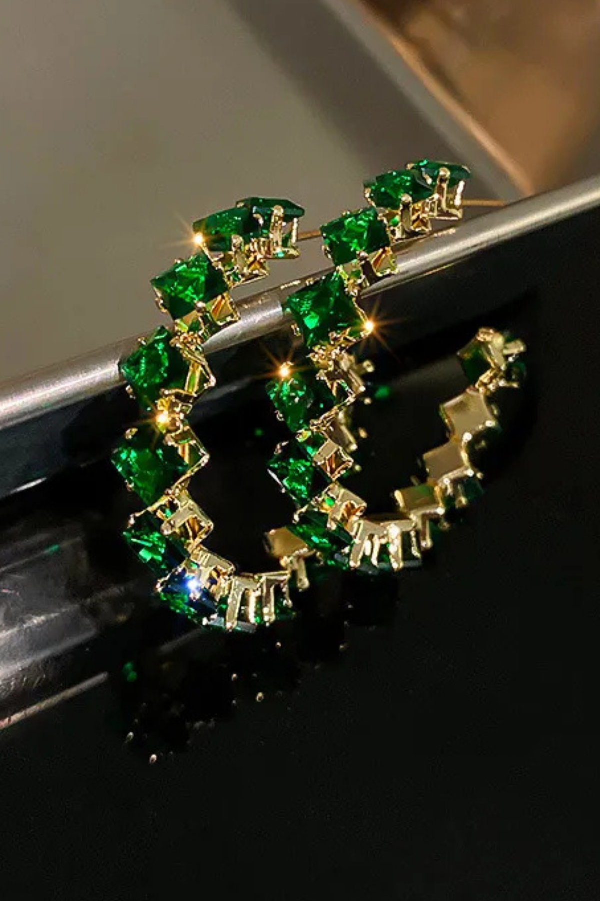 Available in two stunning styles, choose from classic round-cut stones or eye-catching square-cut stones. Each style comes in rich emerald green for a dramatic pop of color or timeless clear for that diamond-inspired glow. The structured C shape gives the illusion of a full hoop while remaining lightweight and easy to wear.