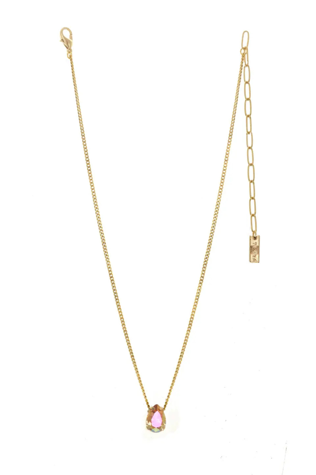 Add a pop of radiant color with the Lumi Necklace in Watermelon. This stunning piece showcases a high-quality pear-shaped crystal that shimmers beautifully in every light. Designed with an antique gold-plated finish and a delicate 14” chain with a 3” extension, it’s the perfect balance of elegant and playful. Handcrafted in Canada, this necklace brings timeless sparkle to any look—from casual chic to evening glam.