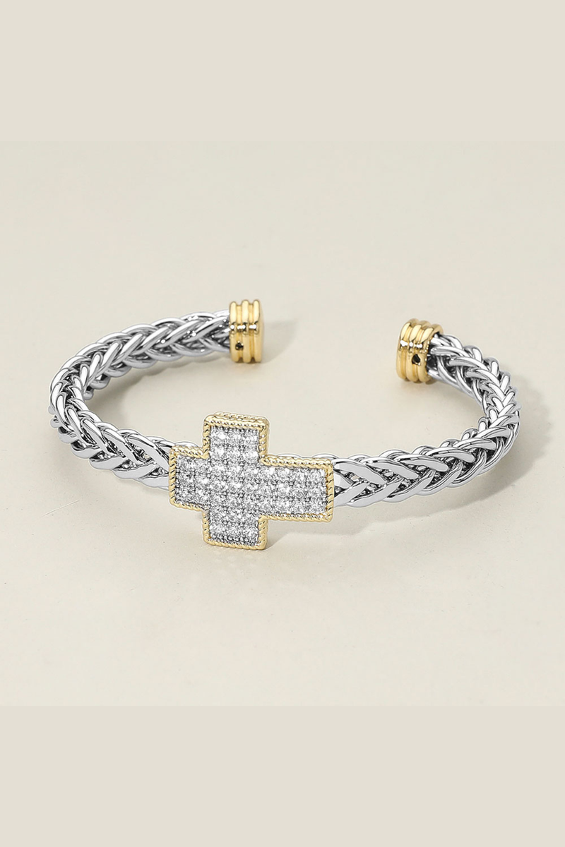 Hammered Metal Cross Accented Faceted Beads Stretch Bracelet