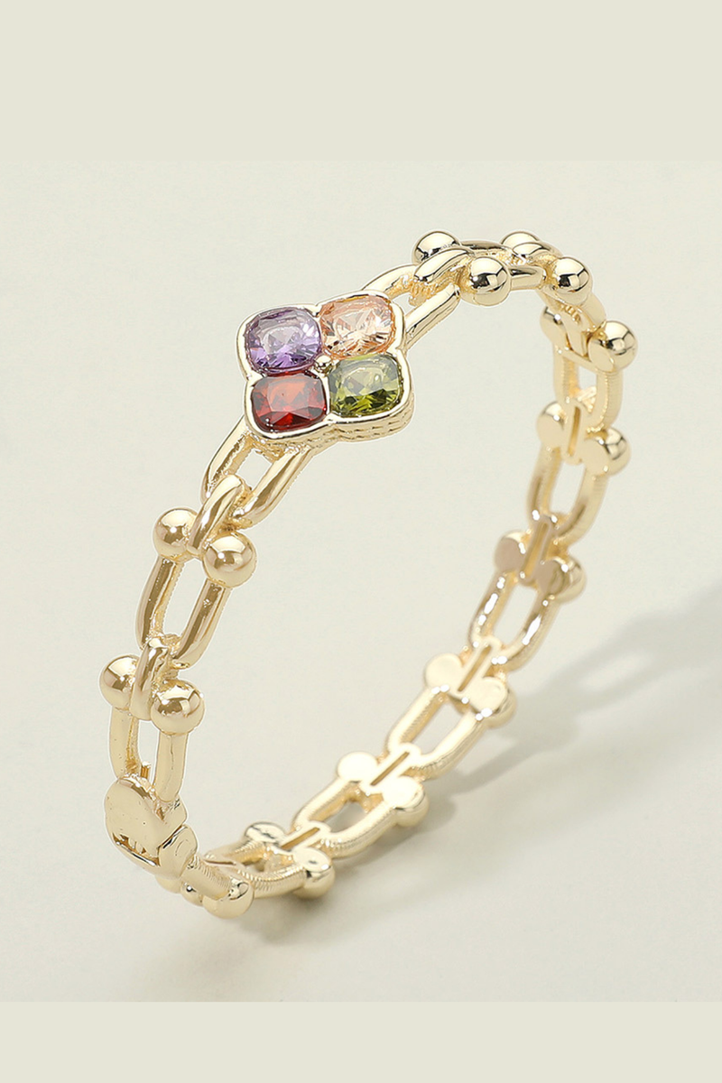 Faux Sparkle Leather Metal Link Accented Snap Bracelet