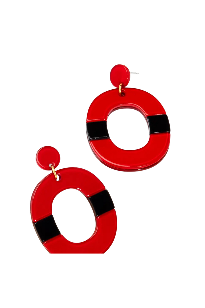 Color Block Oval Drop Earrings in Red