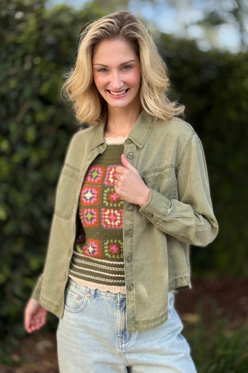 Tribal Flowy Overshirt in Dark Cactus Clay