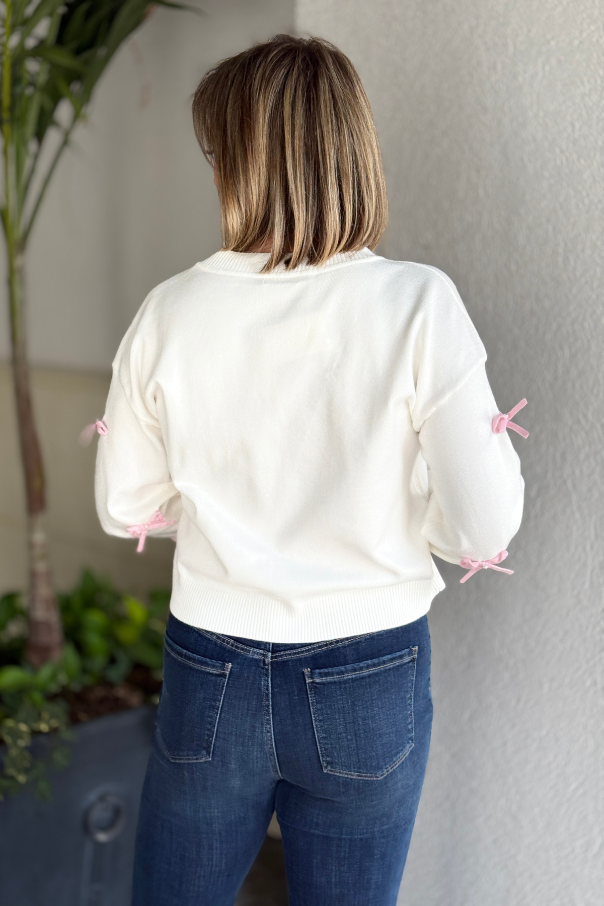 Charming and cozy, The Blush Bow Garden Cardigan is the perfect blend of softness and femininity. Crafted from a luxuriously soft knit, this cardigan features delicate bow embroidery throughout, adding a sweet, romantic touch to a timeless silhouette. Designed for effortless layering, it pairs beautifully over dresses or styled casually with denim for a polished, everyday look you’ll reach for all season long.