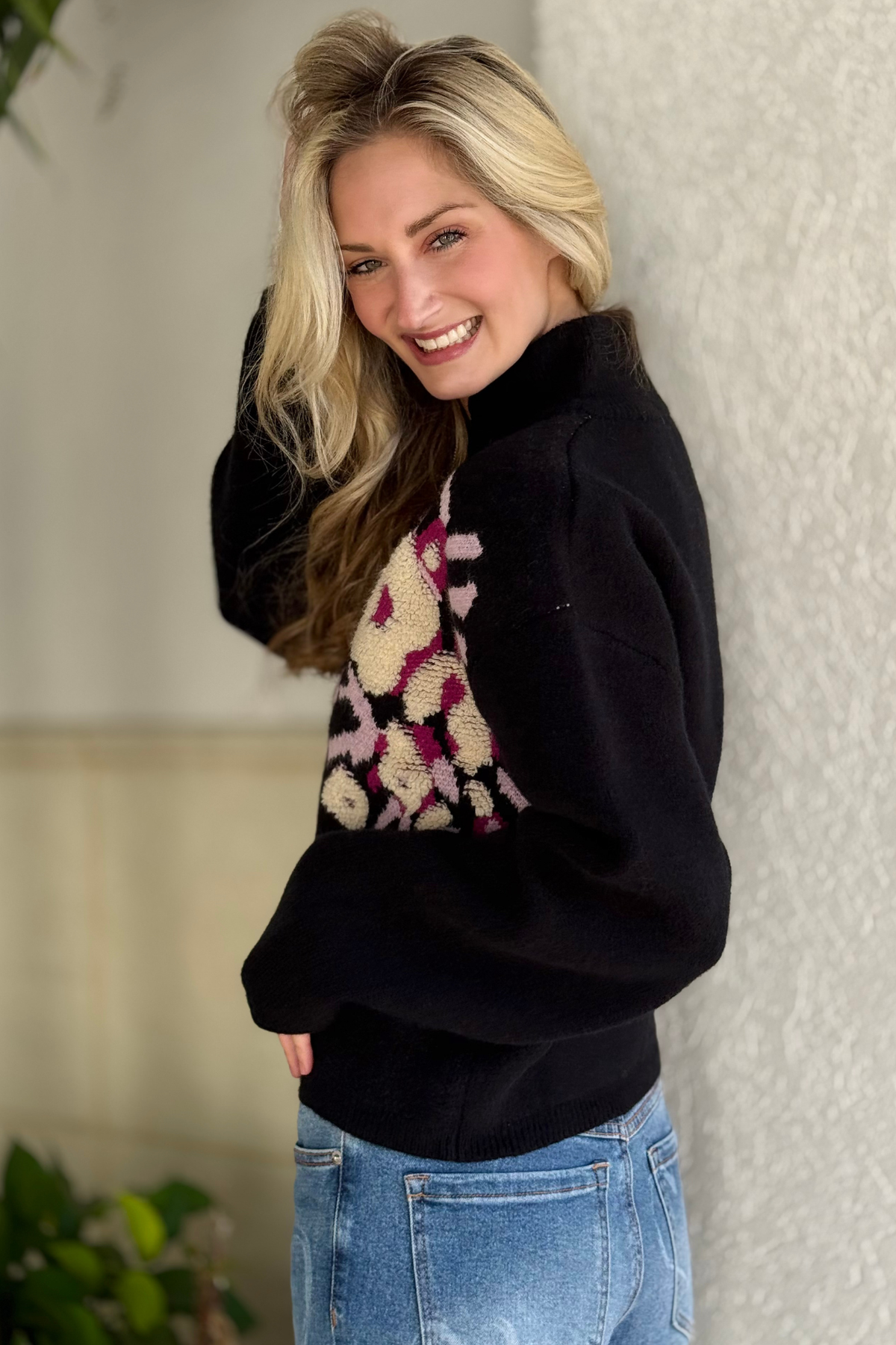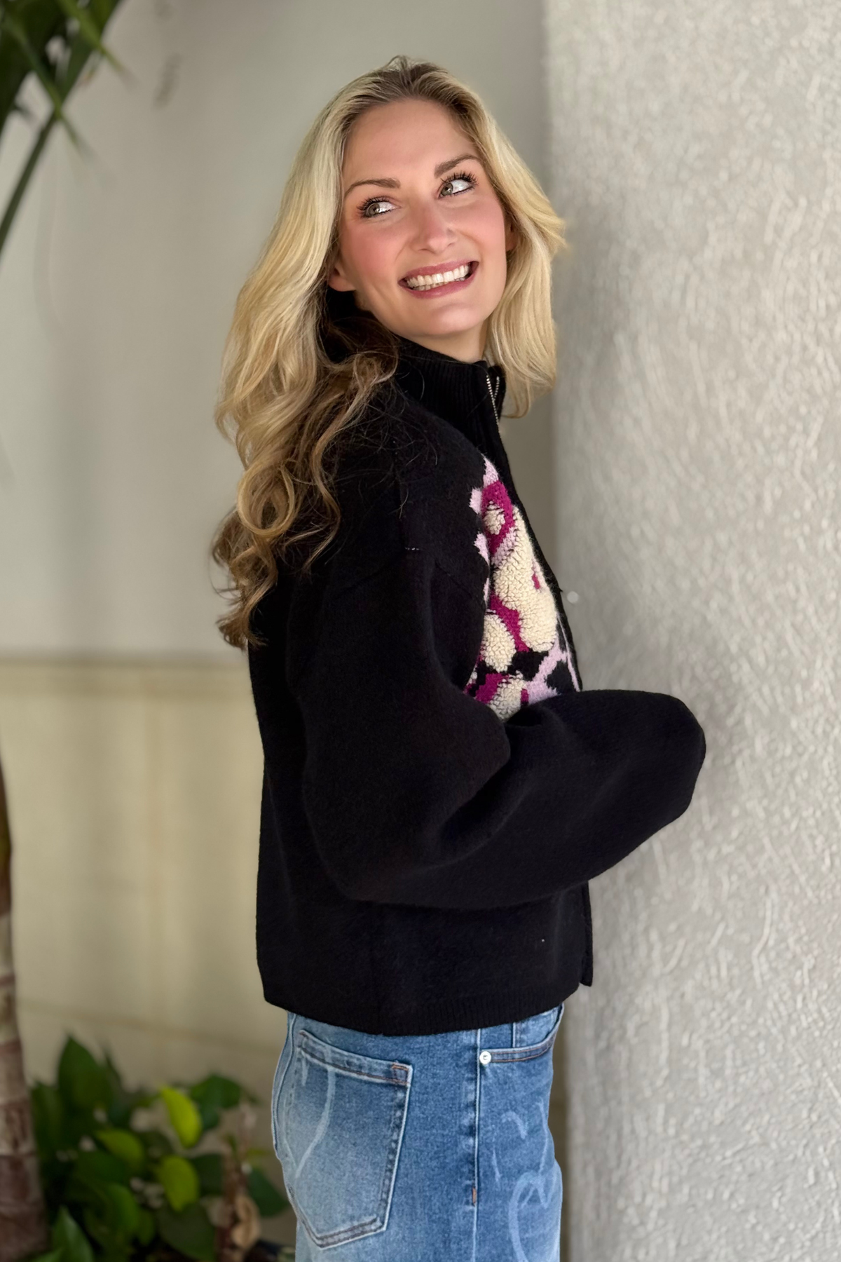 Stay effortlessly cozy and casually cute in The Frosted Bloom Zip-Up Cardigan. Crafted from an ultra-soft knit, this semi-cropped cardigan features a ribbed stand collar, long puffed drop-shoulder sleeves, and a smooth zip-up front for easy layering. The relaxed silhouette pairs perfectly with denim or leggings, while the textured floral knit adds a charming, winter-bloom touch that makes this piece feel both playful and polished. Perfect for chilly days, cozy nights, and effortless everyday style.