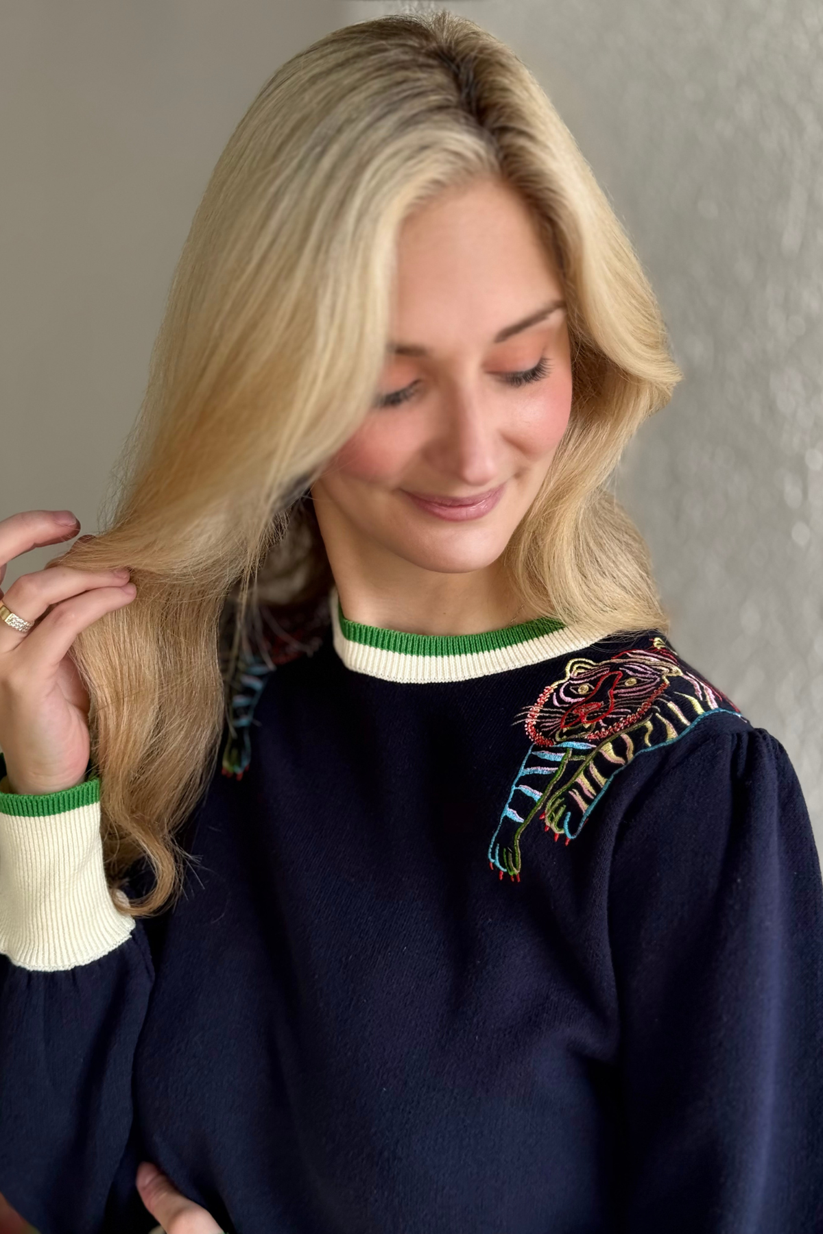 Ruffle Trim Quarter Snap Sweatshirt in Navy