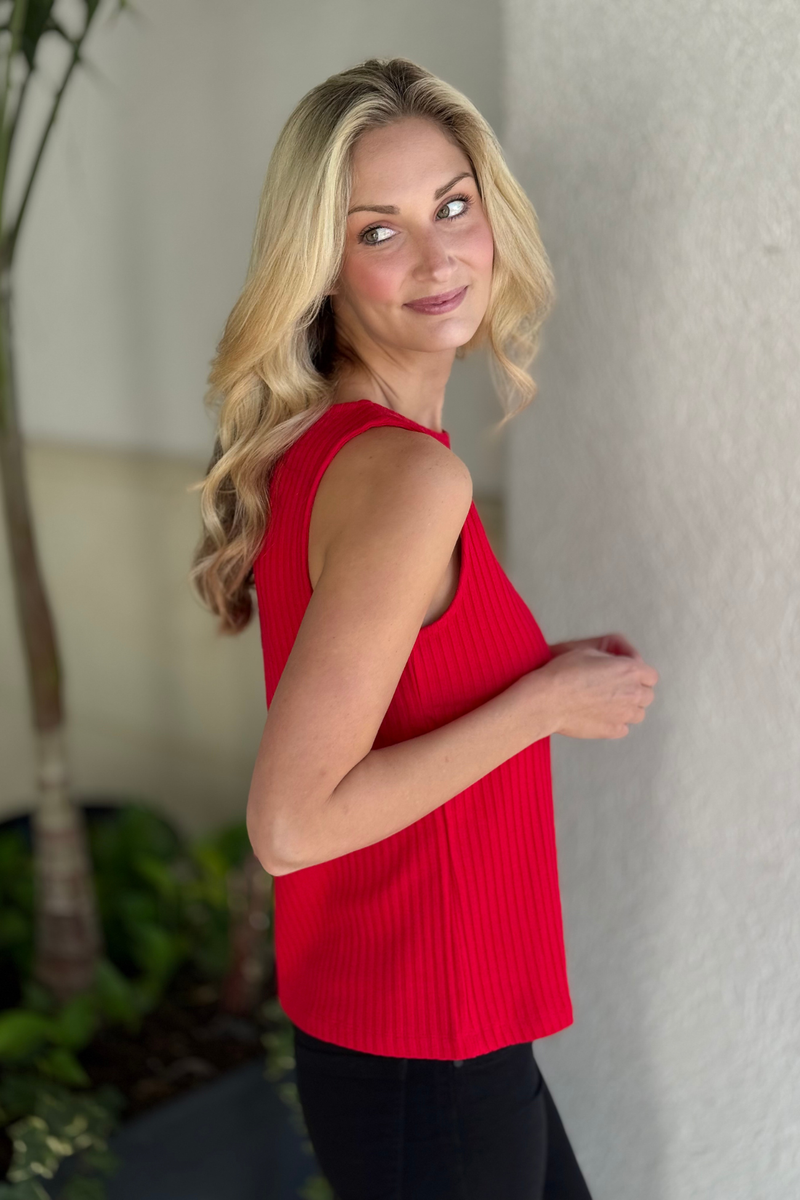 Liverpool Sleeveless Boat Neck Rib Knit Top – Tango Red