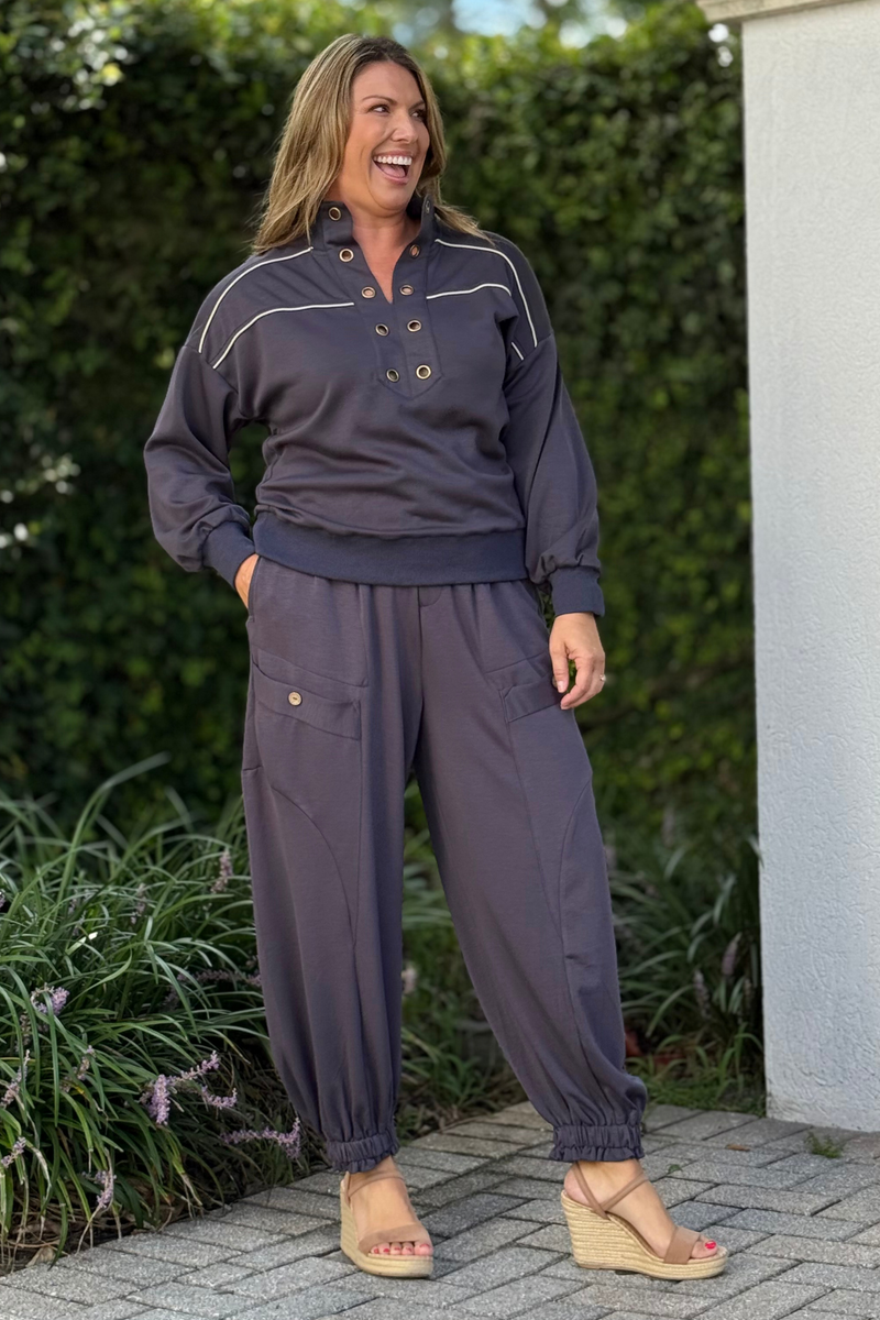 Haven Soft Knit Button Jogger Pants in Charcoal Rich