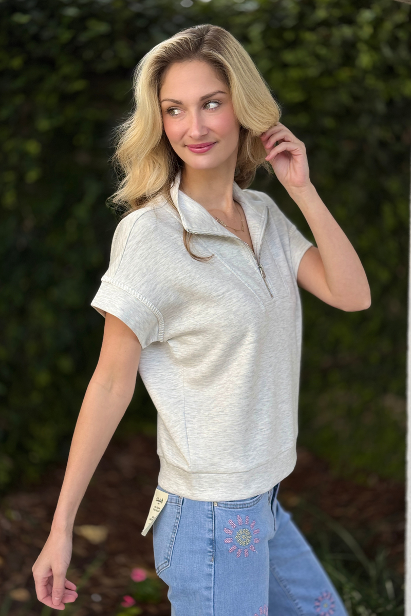 Charlie B Soft Scuba Half-Zip Collar Top – Heather Light Grey