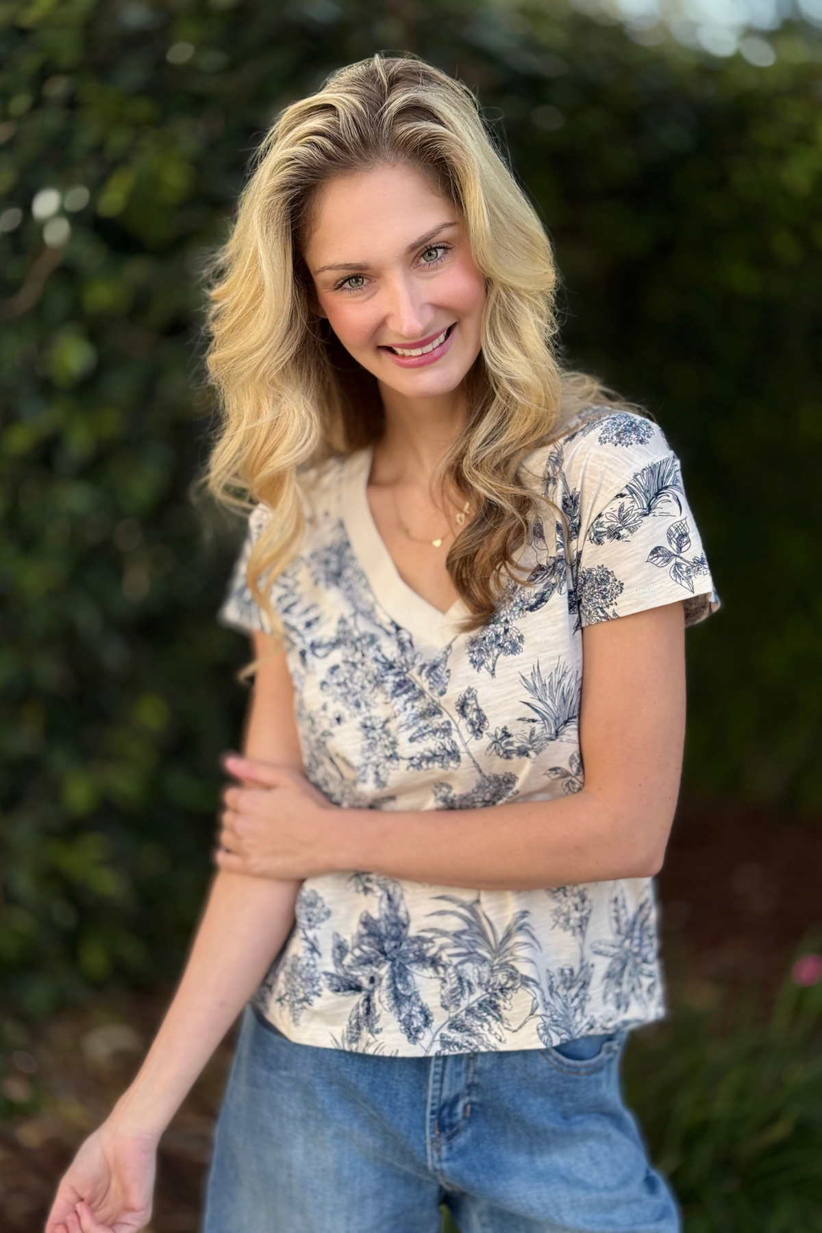 Charlie B Printed Organic Cotton Drop Shoulder V-Neck Tee
