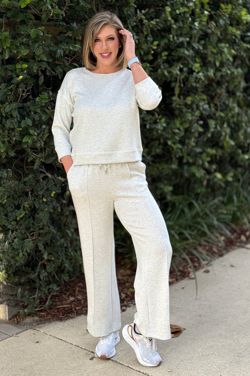 Charlie B Soft Scuba Wide Leg Jogger Pants – Heather Light Grey