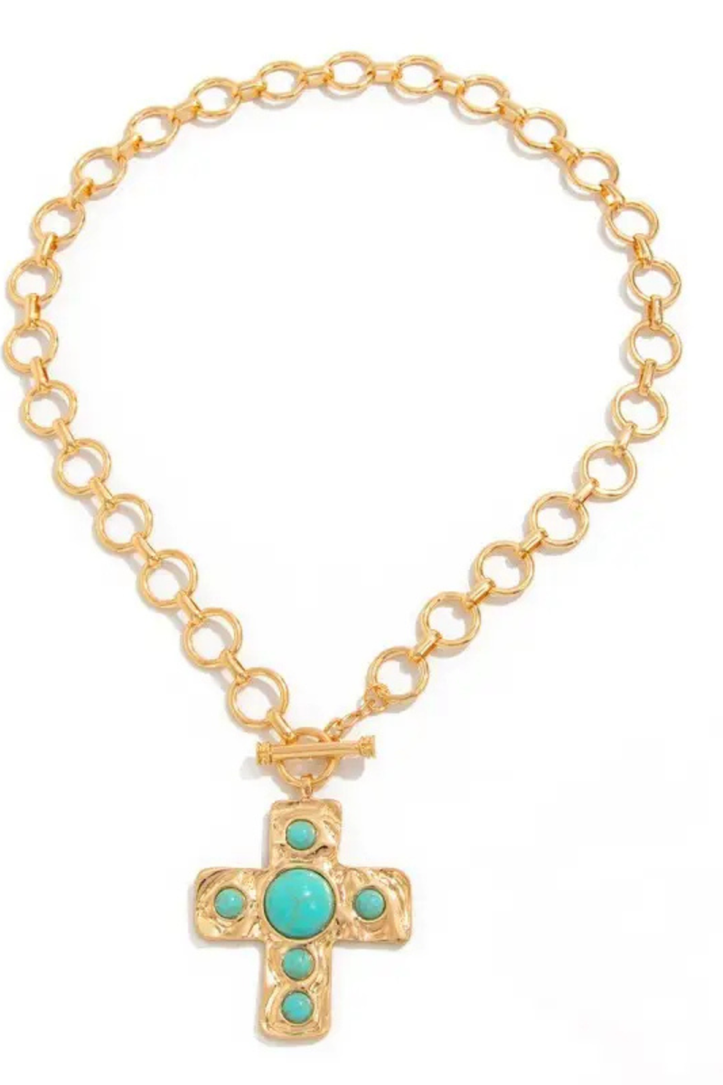 Hammered Metal Square Bead Stretch Bracelet in Turquoise