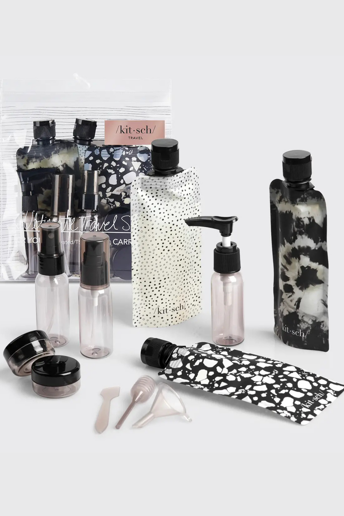 Stay organized and stylish on the go with our Chic Voyager 11-Piece Refillable Travel Set. Featuring a sleek black and ivory design, this TSA-approved kit includes everything you need for mess-free packing and seamless travel.