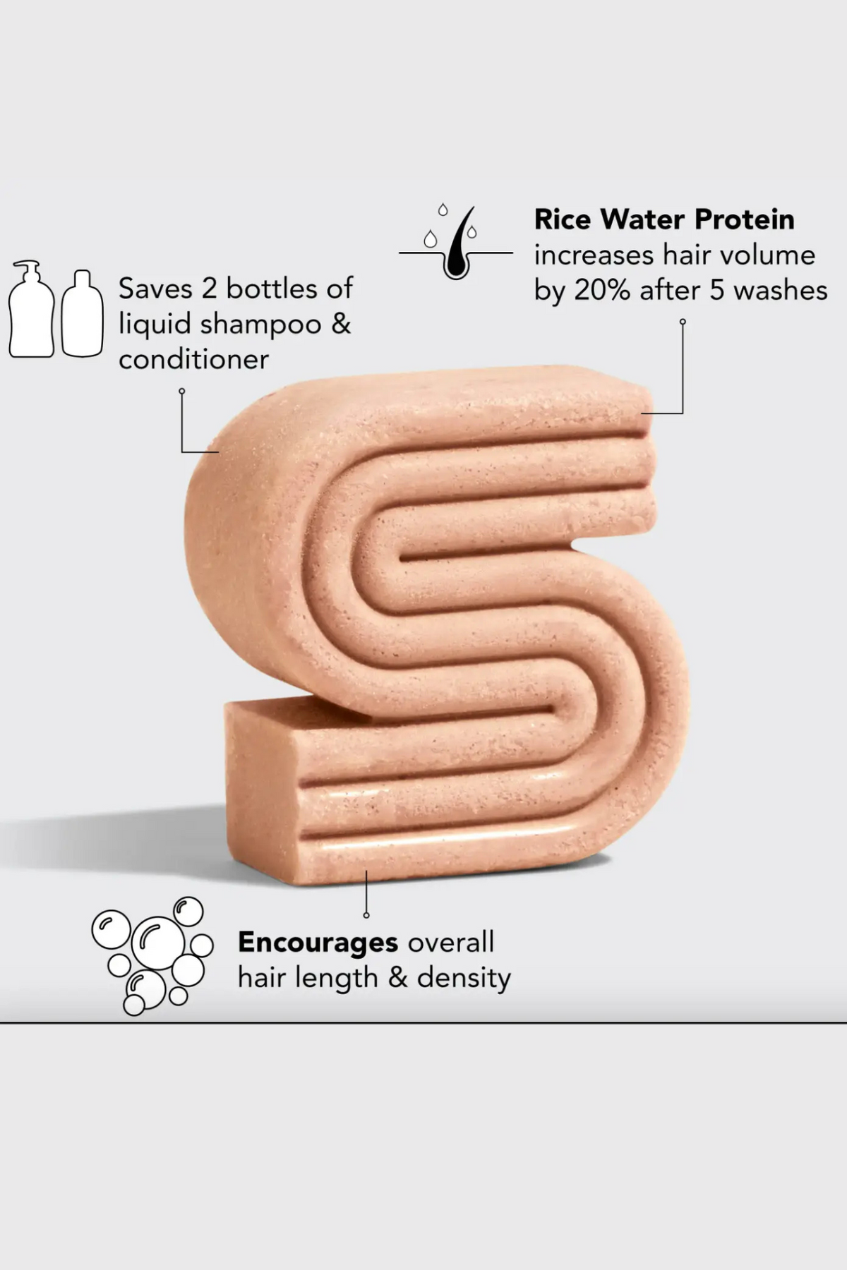 The Rice Rise Growth Shampoo Bar is your go-to for boosting hair strength, length, and shine — naturally. Powered by nutrient-rich rice water and rice protein, this solid shampoo helps repair damaged follicles, reduce split ends, and improve volume and density in just five washes.* Perfect for dull, dry, or thinning hair.
