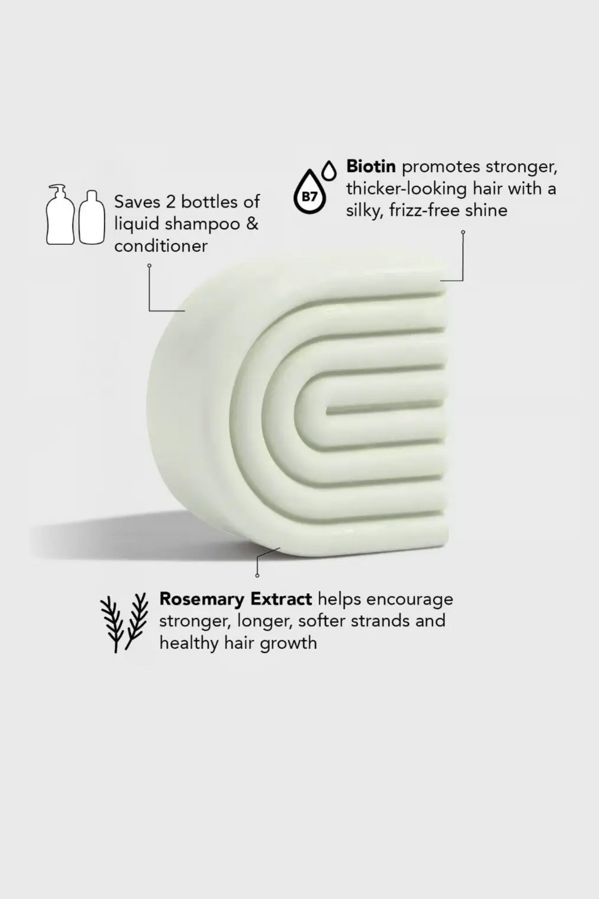 This nourishing formula is designed specifically for fine and delicate hair, leaving strands softer, smoother, and healthier-looking. Infused with rosemary, biotin, and amaranth protein, it works from within to help thicken strands and support overall hair health. The formula also promotes volume, shine, and keratin production, giving your hair a fuller, more vibrant appearance. A powerful peptide blend rich in antioxidants helps strengthen strands, reducing breakage and split ends for smoother, more resilient hair. Lightweight and carefully balanced, it cleanses and conditions without leaving behind residue. Free from parabens, phthalates, silicones, and sulfates, it’s pH balanced and safe for color-treated hair. Plus, it helps reduce single-use plastic by saving the equivalent of two bottles of traditional shampoo or conditioner.