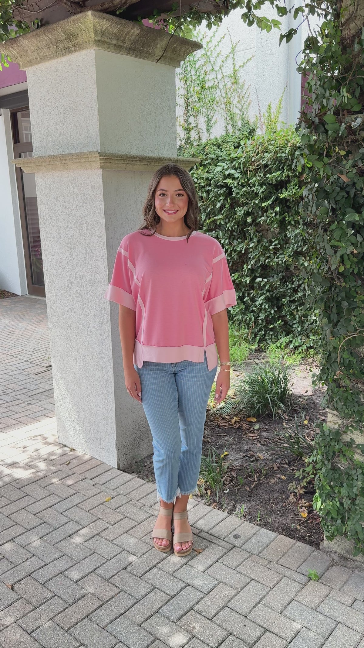 Simple with a stylish edge—The Rosie Side Split Top is your new go-to for effortless, everyday wear. Featuring half sleeves, raw edge seaming, and a flattering high-low hem with side slits, this solid pink beauty pairs perfectly with denim or leggings. Easy to style, easy to love.