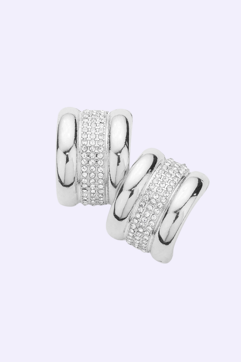 Rhinestone Paved Accented Metal Curved Rectangle Earrings