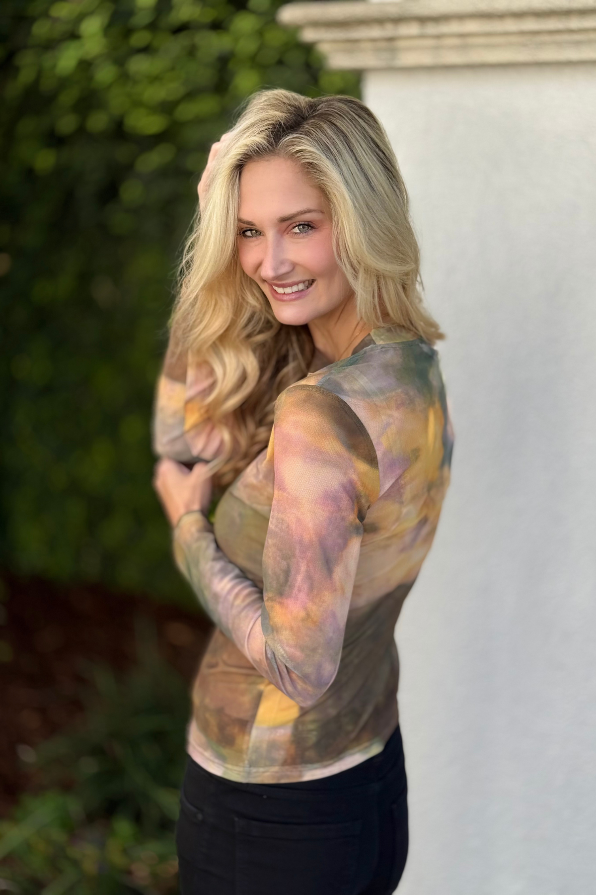Meet your next must-have layering essential—our Taupe Multi Abstract Mesh Long Sleeve Top. This bestselling piece features a lightweight sheer mesh design with a round neckline and an artfully blended abstract print in earthy tones. The stretchy, breathable fit makes it perfect for styling under graphic tees, sweaters, jumpsuits, or blazers, while the striking color mix adds effortless depth to any outfit. Chic, versatile, and endlessly wearable, it’s a standout layer that brings modern sophistication to both casual and dressed-up looks.