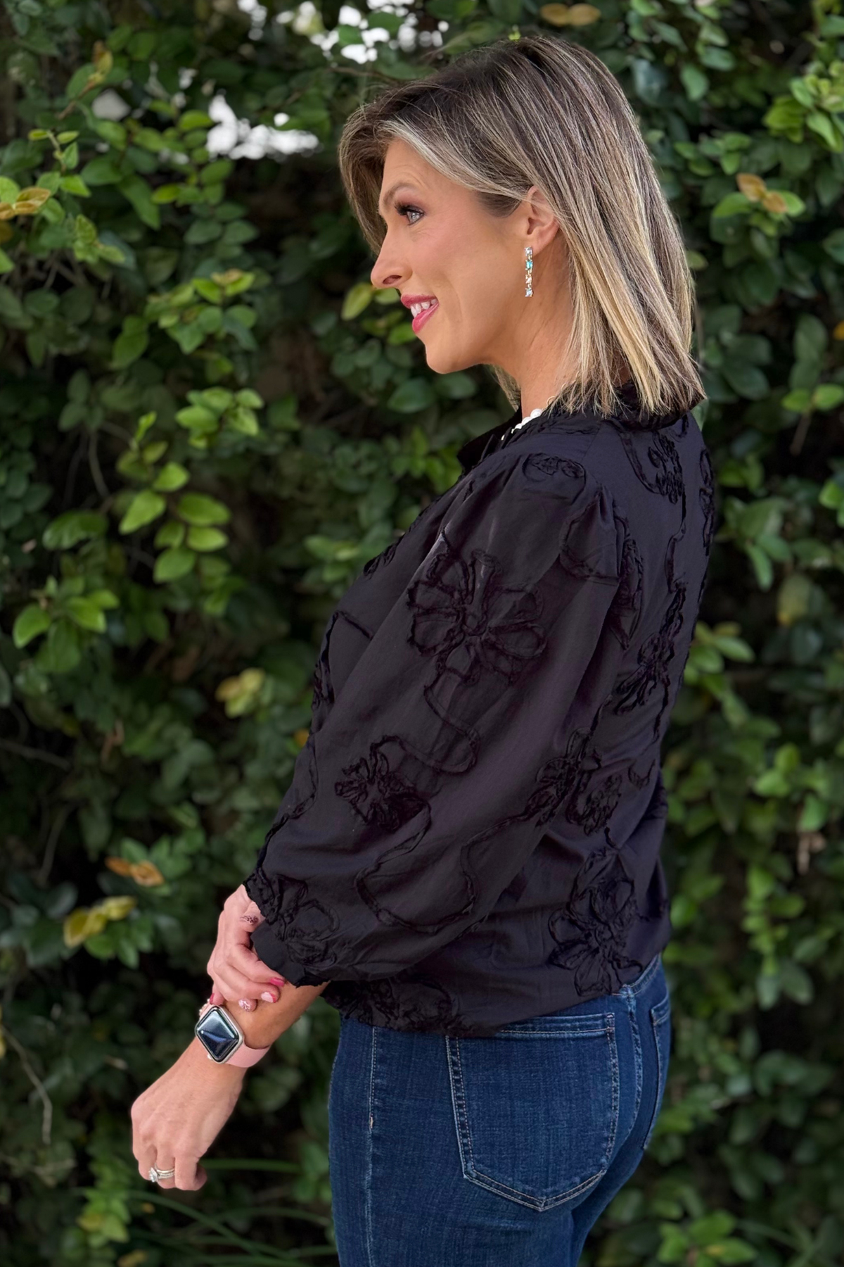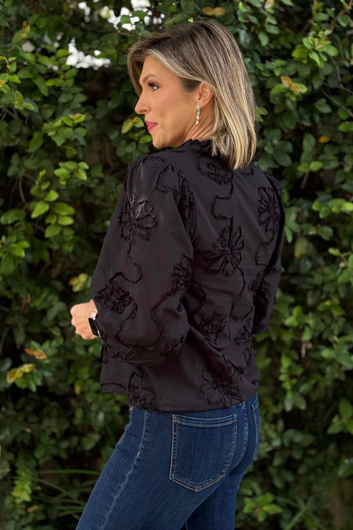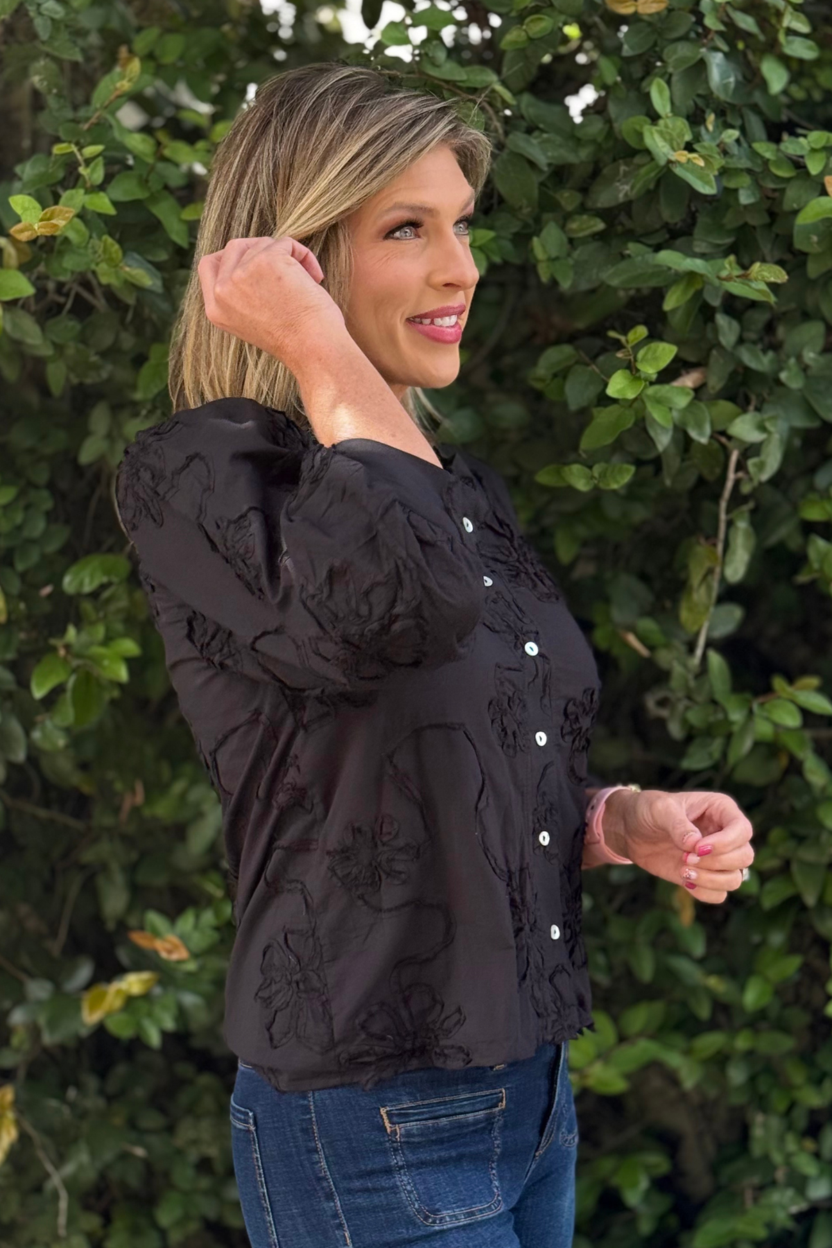 Elevate your everyday look with The Marlowe Textured Floral Button Top. This charming blouse features intricate 3D floral detailing that adds soft dimension and femininity to the lightweight, textured cotton fabric. Designed with 3/4 sleeves, a subtle ruffled neckline, and a button-down front, it’s the perfect blend of effortless elegance and comfort. The breathable 100% cotton keeps it comfortable all day, making it easy to style tucked or untucked. A statement piece that transitions seamlessly from weekday polish to weekend outings.