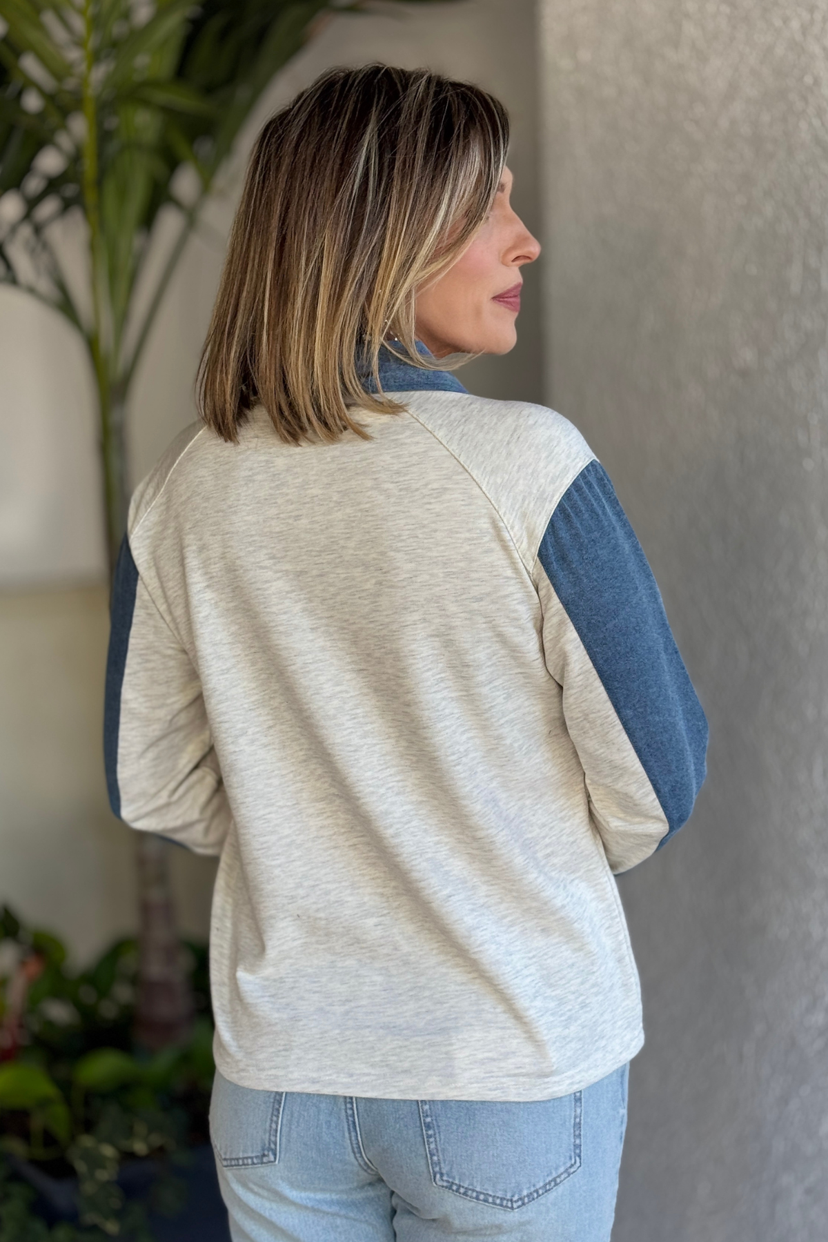 A reworked classic with a fresh boutique twist, The Remixed Classic Denim Patchwork Polo Top blends casual comfort with elevated style. This long sleeve top features mixed denim-inspired patchwork panels paired with a polished polo collar and button placket for a look that feels effortlessly put together. The lightweight denim-jersey blend keeps it comfortable for all-day wear, while the structured collar and cuffed sleeves add just the right amount of refinement. Easy to style with denim, trousers, or casual bottoms, this top transitions seamlessly from everyday errands to casual dinners and weekend plans.