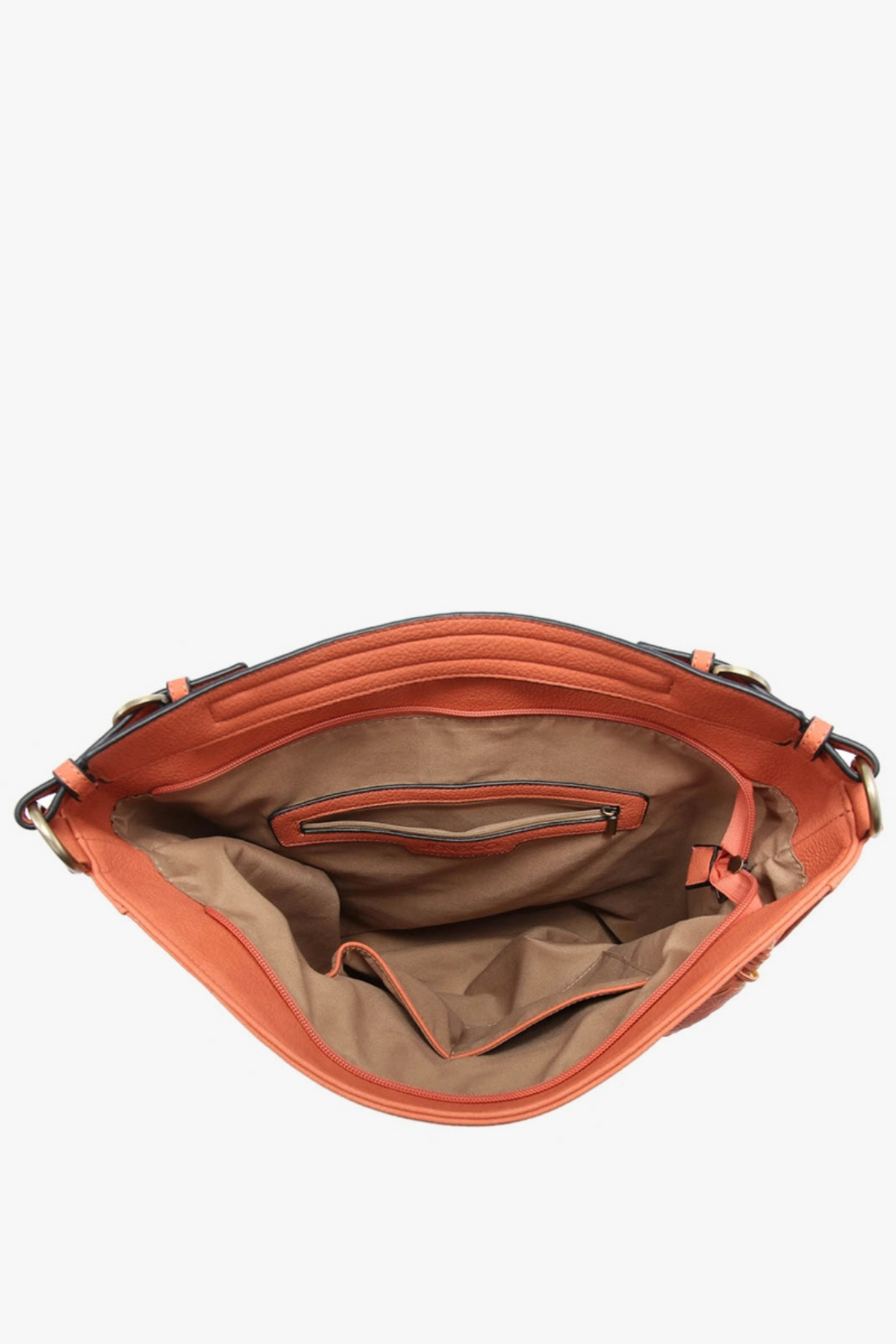 Meet your new go-to carryall—the Aris Grey Whipstitch Hobo with Guitar Strap. Crafted from soft vegan leather, this spacious bag blends rustic charm with modern function. A braided whipstitch front adds boho flair, while the removable patterned guitar strap gives you a trendy crossbody option. Multiple zipper pockets keep your essentials secure, making it the perfect everyday bag for work, travel, or weekend adventures.