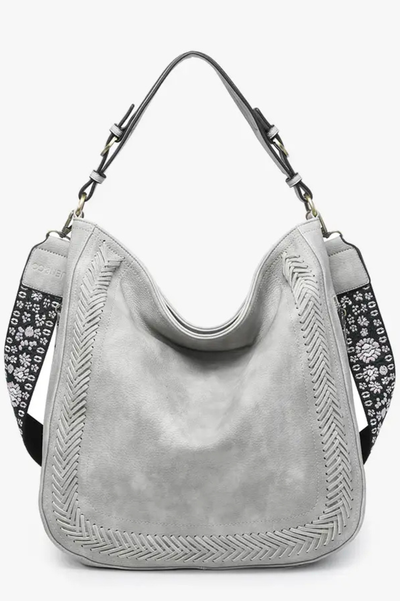 Aris Light Grey Whipstitch Hobo with Guitar Strap