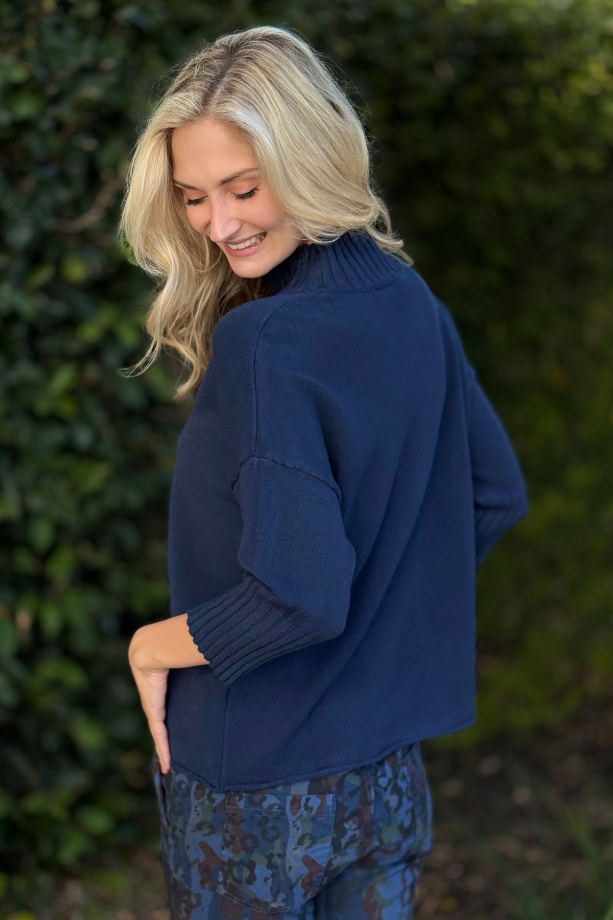 Flora Ashley Mock Neck Knit Sweater in Navy