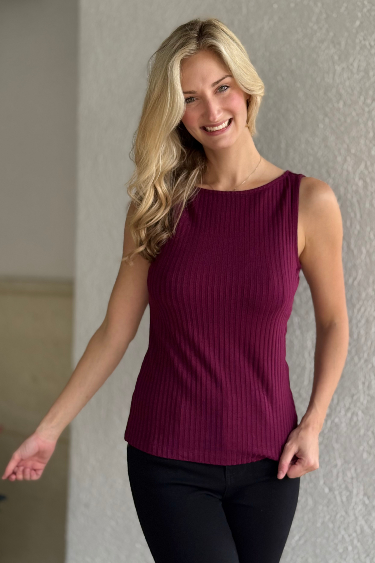 Liverpool Rib Knit Boat Neck Tank in Wine Berry