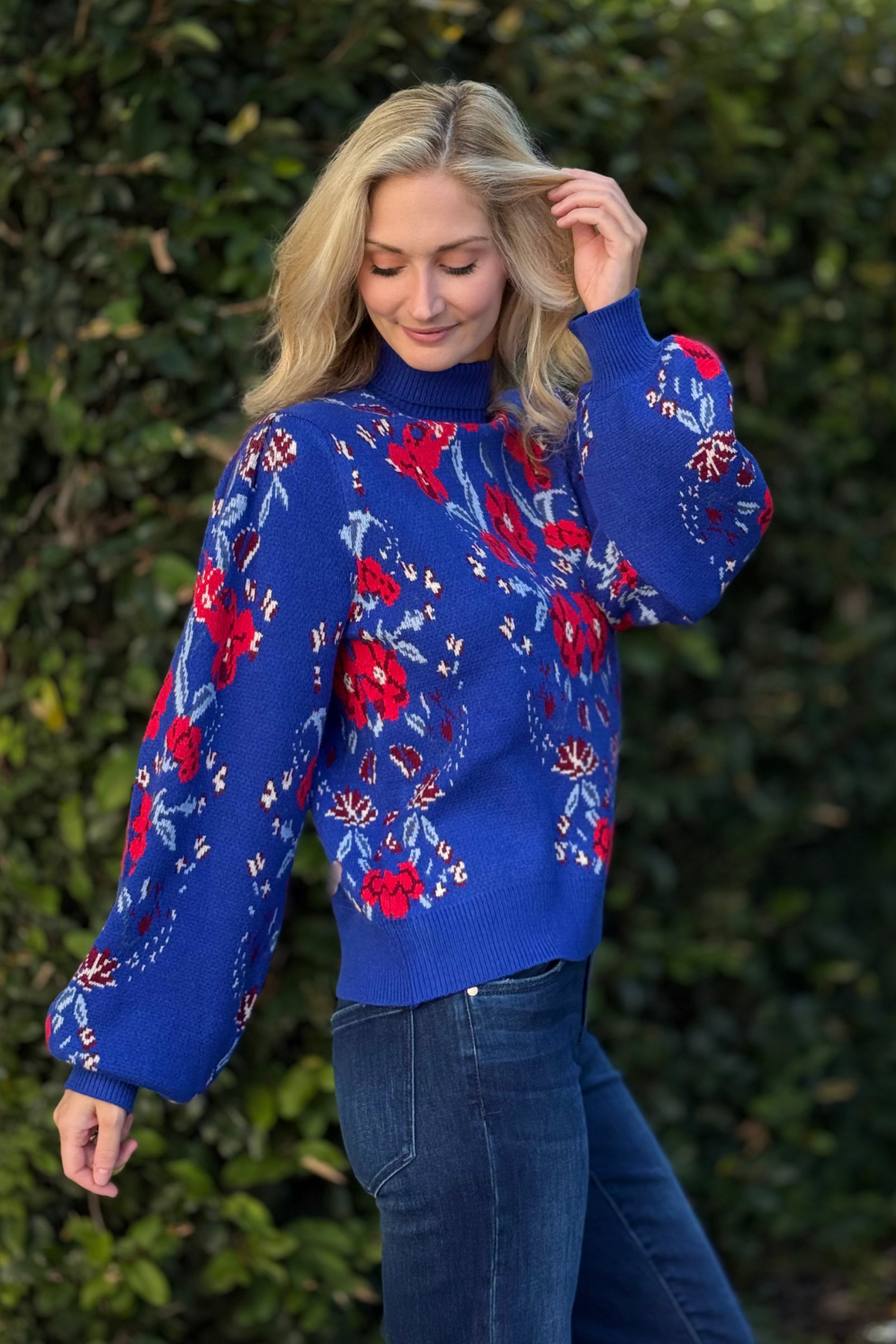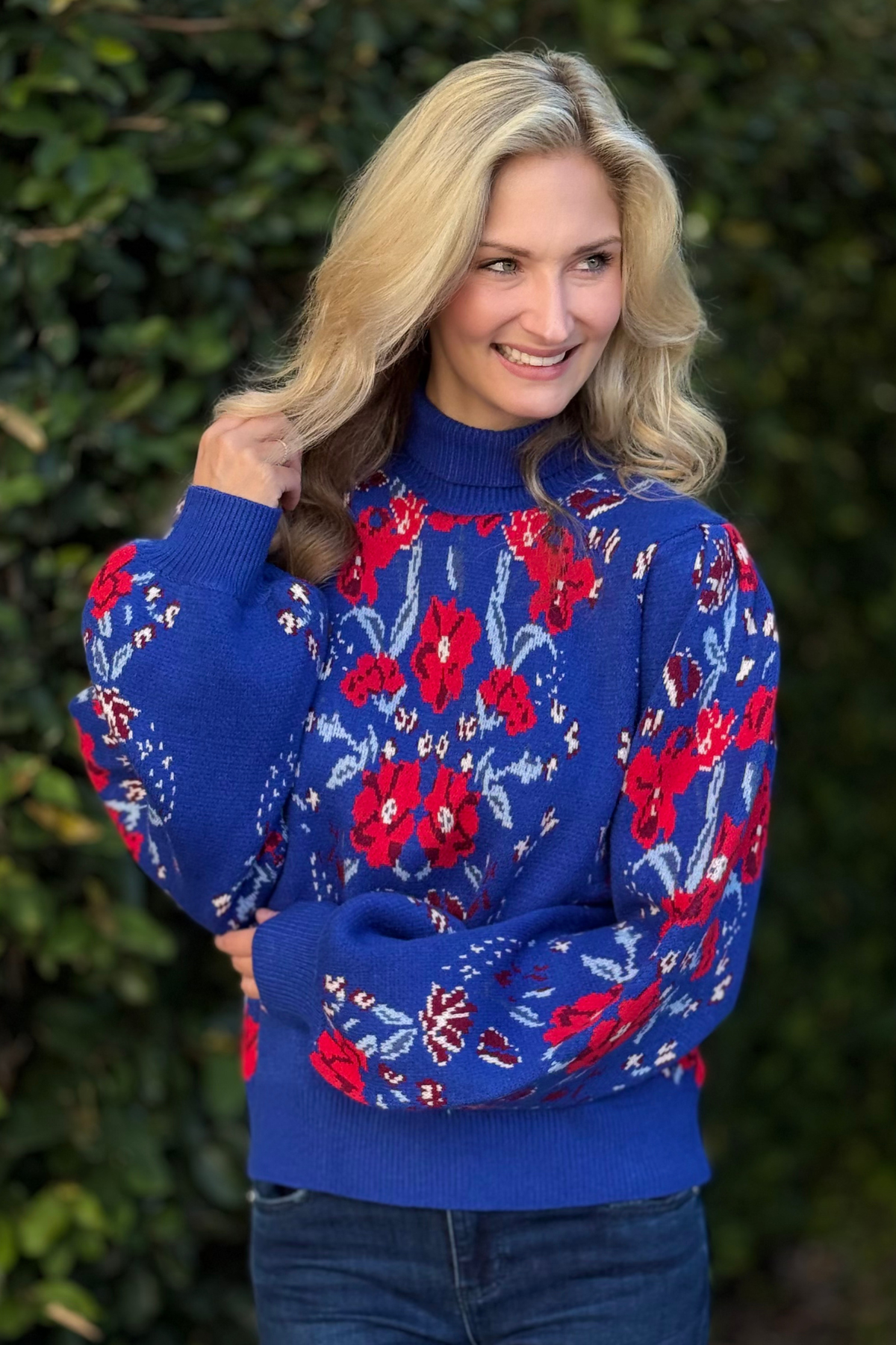 Brighten up your fall wardrobe with The Garden Glow Knit Sweater. This royal blue beauty features a stunning floral knit design that brings a pop of color to cooler days. The cozy turtleneck and long sleeves keep you warm while adding a touch of sophistication to your look. Whether you’re pairing it with jeans for a casual day out or dressing it up with tailored trousers, this sweater is the perfect mix of bold and feminine charm.
