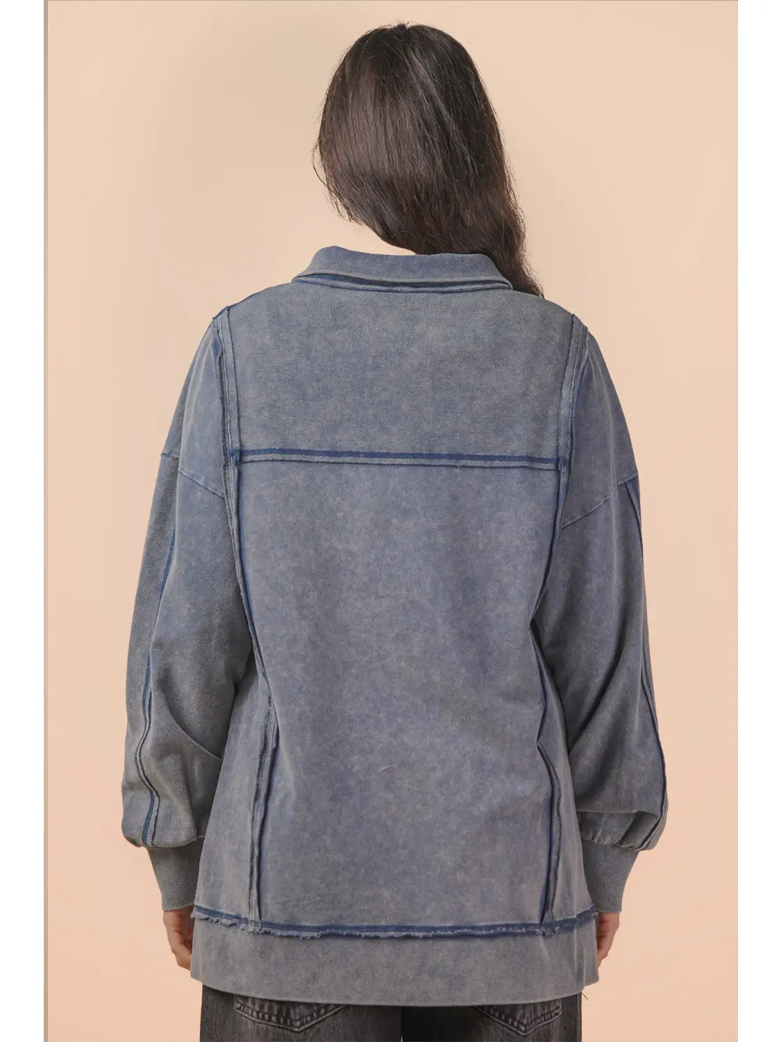 Laid-back comfort meets effortless style in The Weekend Washed Oversized Contrast Knit Pullover. Designed with a relaxed, oversized silhouette, this cozy knit features a soft mineral-washed finish that gives it that perfectly lived-in look. The half button-down neckline paired with a modern mock neck adds a sporty-chic touch, while the drop shoulder design enhances the relaxed, easygoing fit. Thoughtful raw edge detailing and contrast seaming create subtle texture and dimension that elevate this everyday staple. The front slit adds movement and makes layering simple, making this pullover perfect for pairing with leggings, denim, or lounge bottoms for casual days, travel outfits, or cozy weekends.
