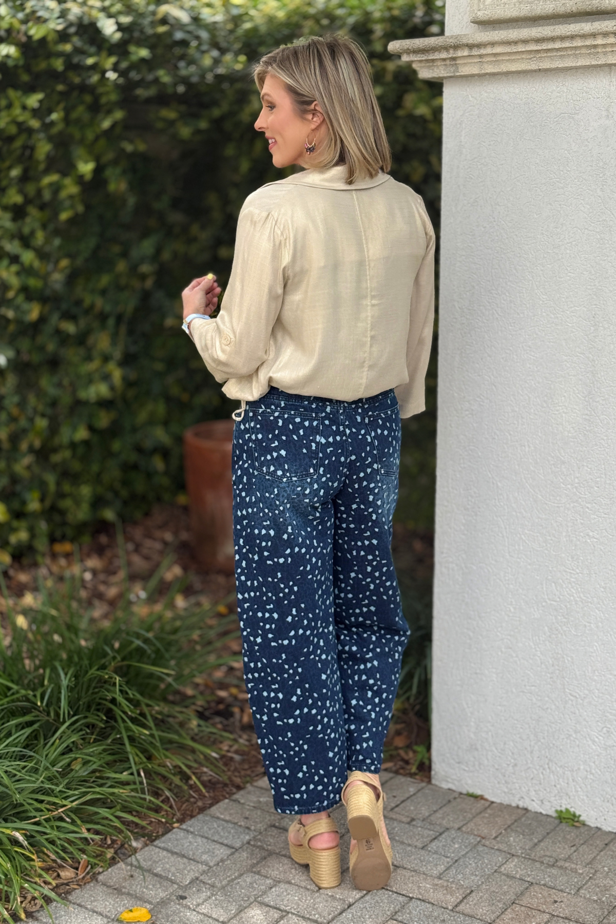 Meet your new statement denim. The Wild Side Barrel Jeans bring a fresh twist to everyday denim with their subtle leopard print pattern and modern barrel-leg silhouette. Designed with a relaxed fit and wide leg shape, these jeans create that effortlessly cool look while keeping you comfortable all day long.