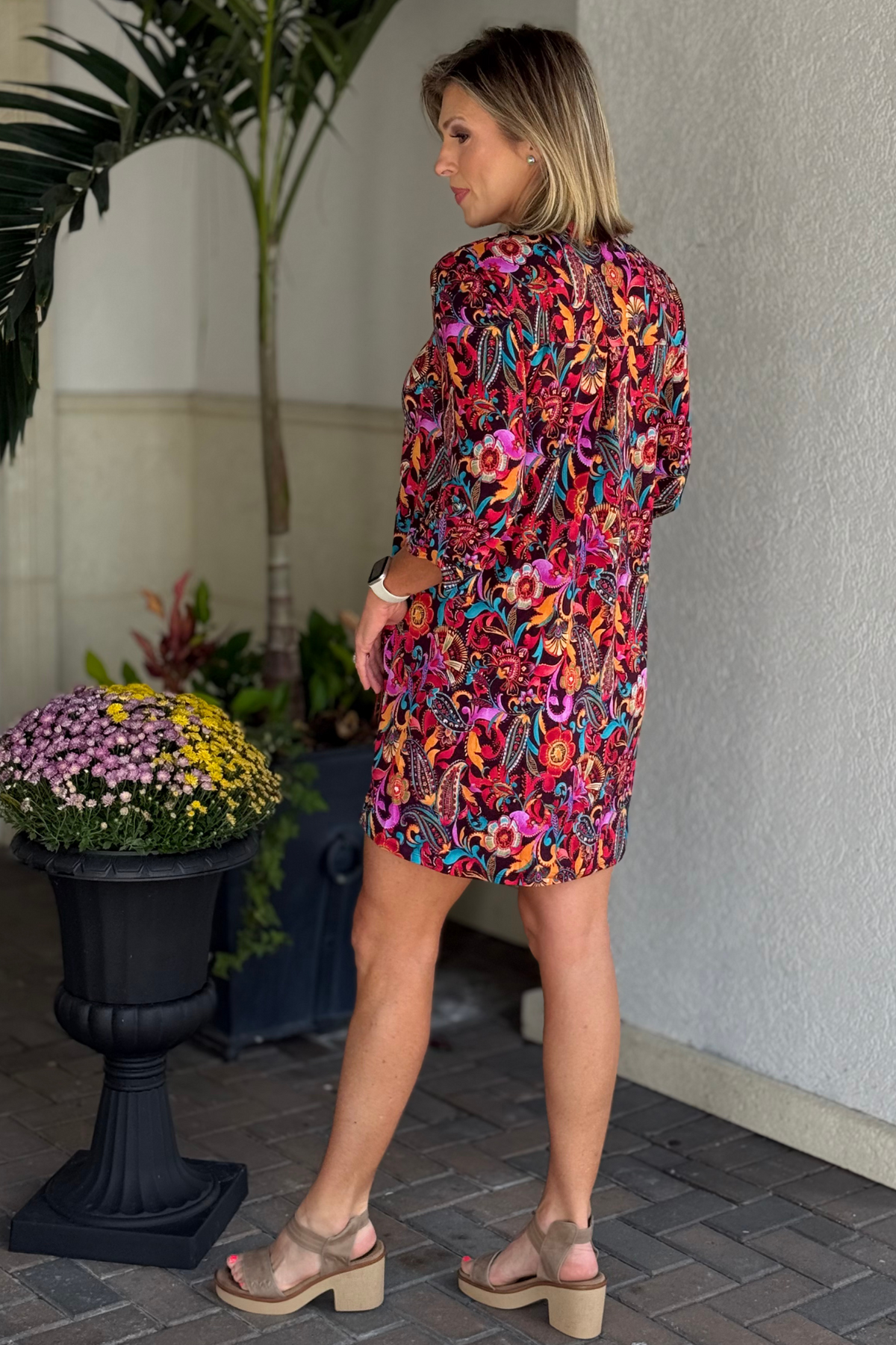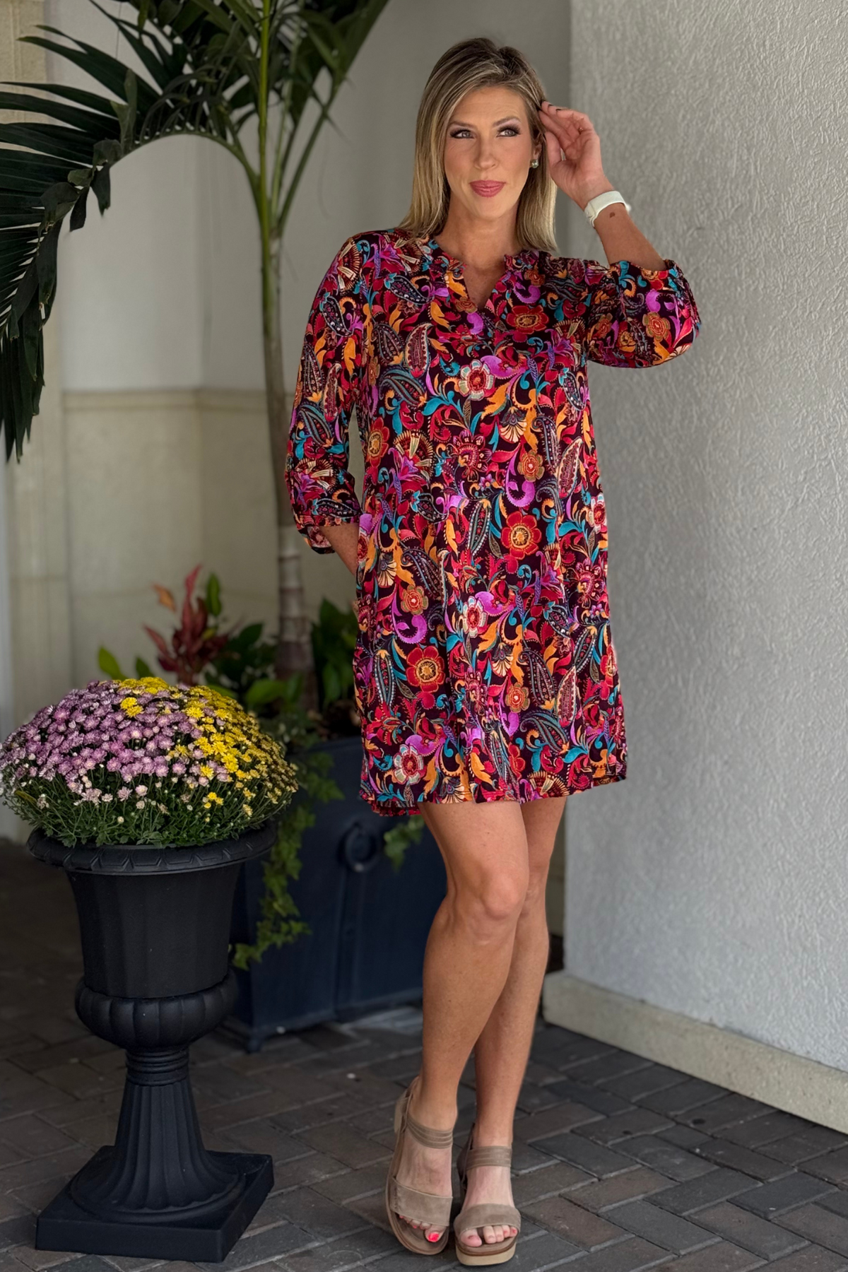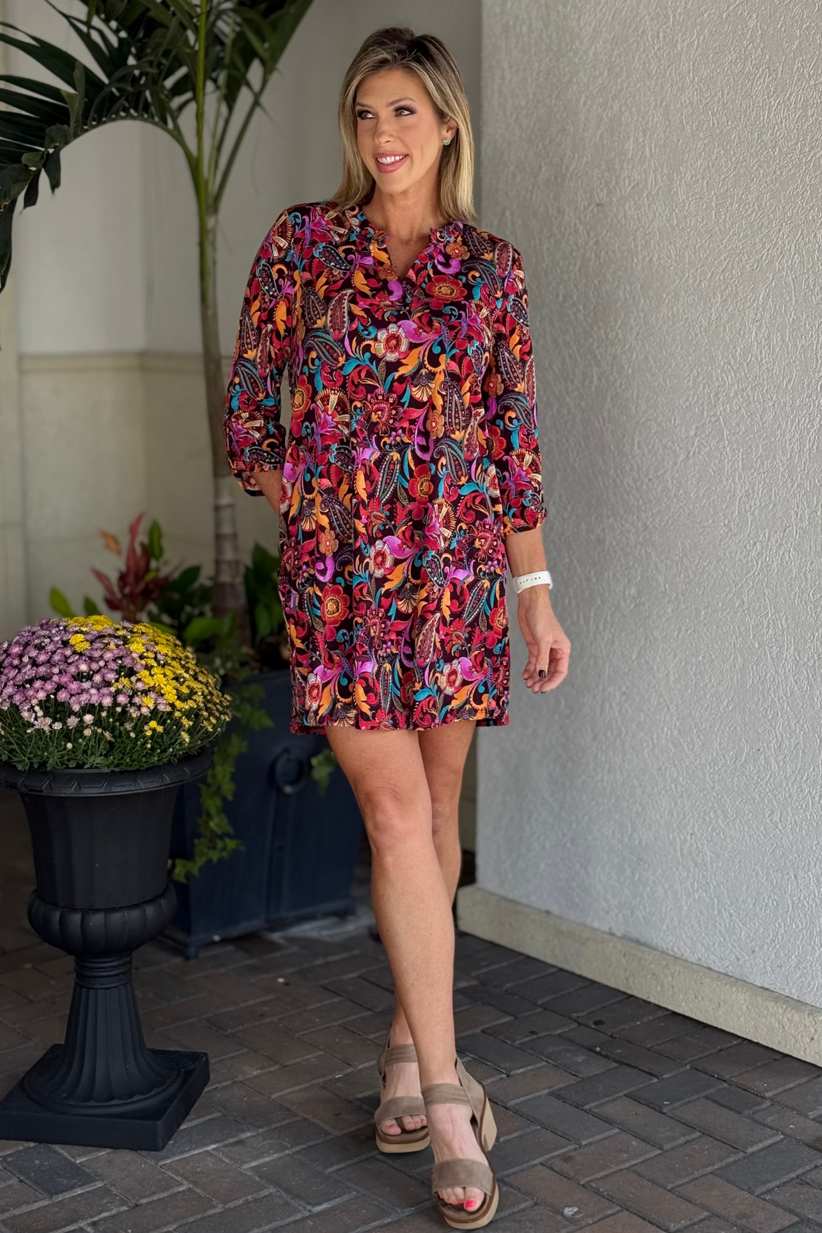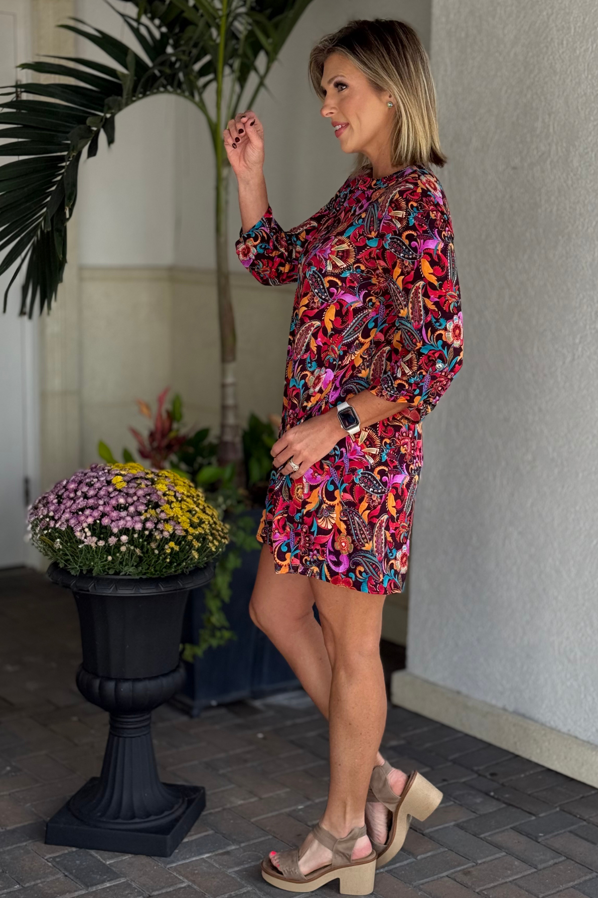 Effortless style meets everyday comfort in our Chocolate Paisley A-Line Dress from the TPN Collection. Designed with a flattering A-line silhouette and a chic mandarin neckline, this wrinkle-free dress is perfect for work, brunch, or weekend outings. Side pockets add practicality while the relaxed fit ensures all-day ease. Made from wrinkle-free fabric, this paisley print dress keeps you looking polished with minimal effort.